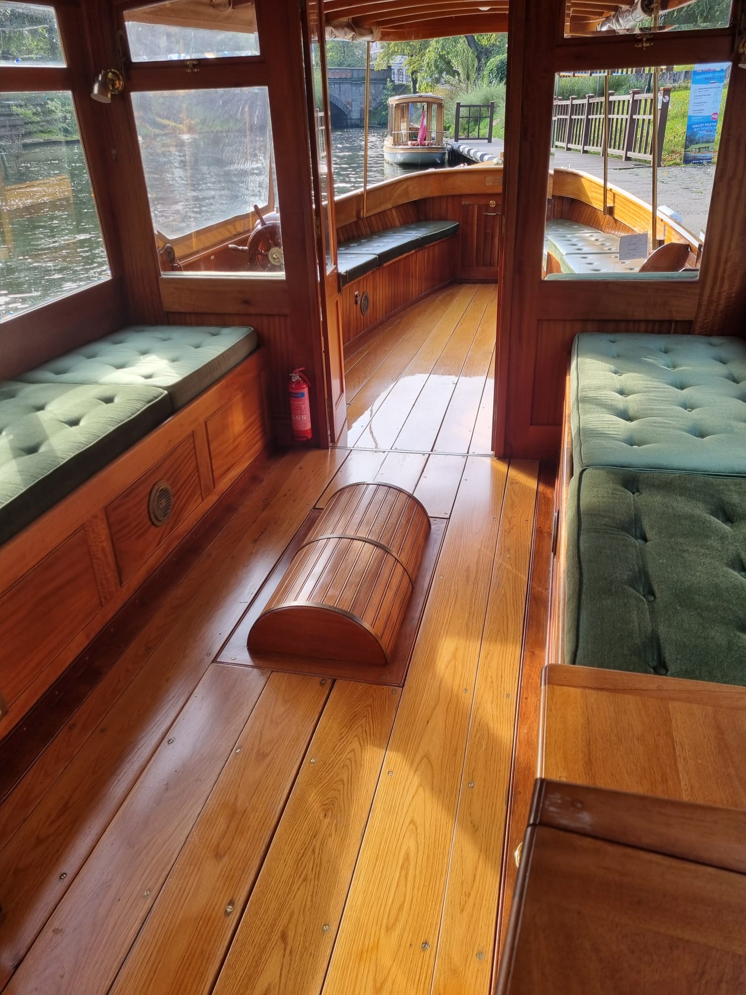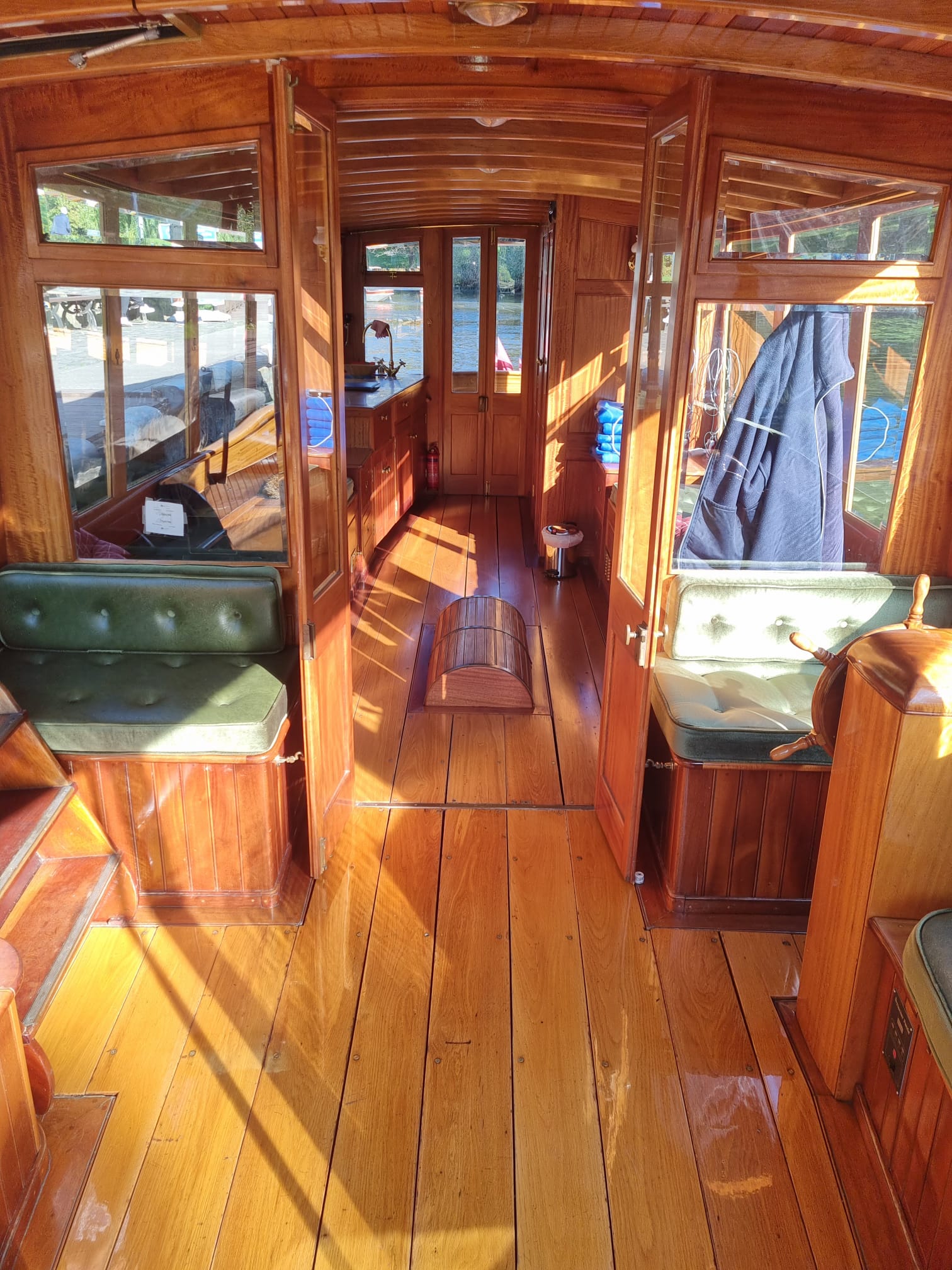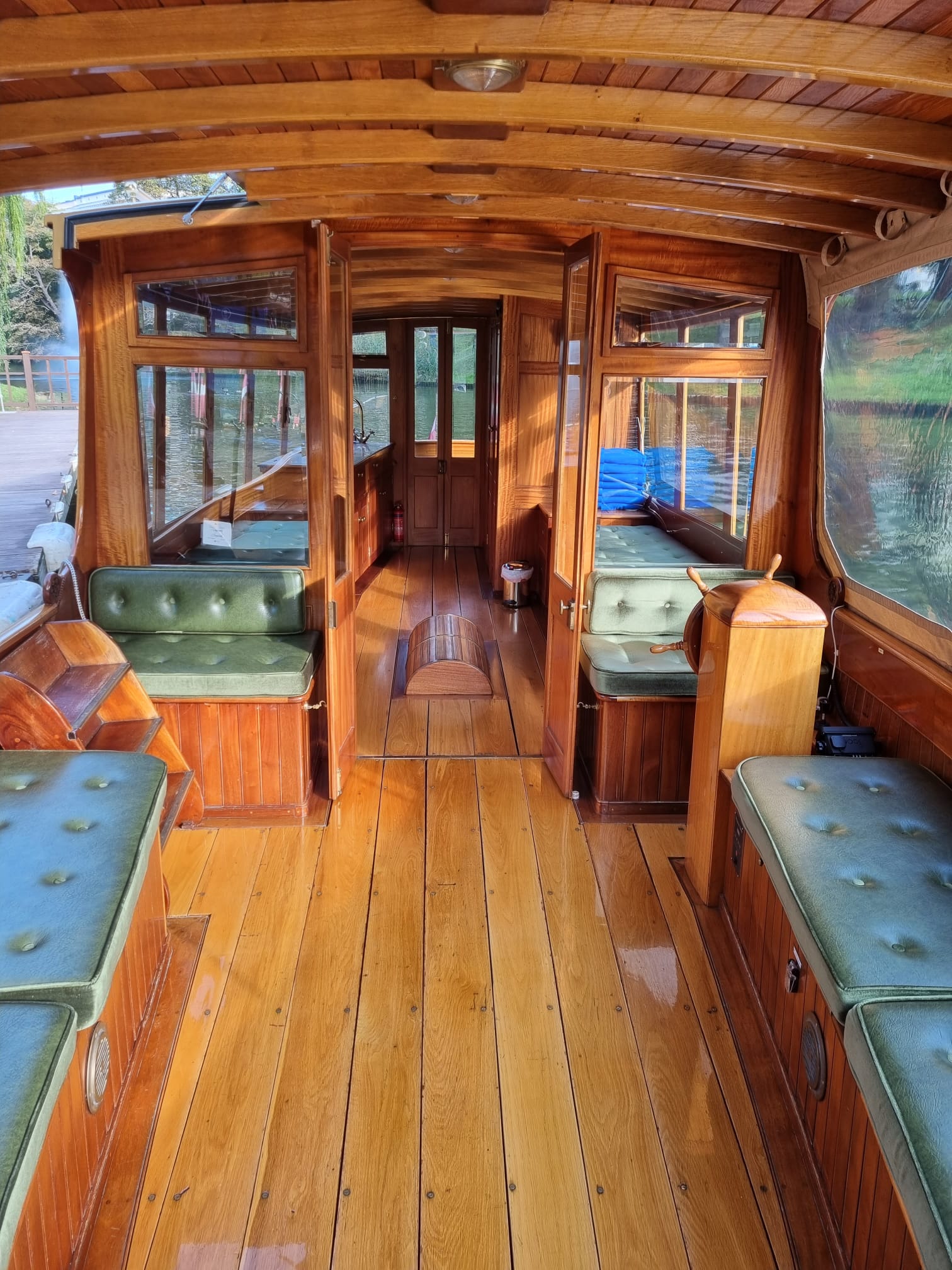Kuģi pilnībā pārveidoja, padarot to piemērotu ekskluzīvām izklaidēm. Salonu izveidoja no masīva tīkkoka ar gaiši dzelteni lakotiem paneļiem, noapaļotām interjera detaļām, saskaņojot ar tādas pašas krāsas grīdu. Arī visas sēdvietas ir izgatavotas no šī vērtīgā koka, un tās papildina ļoti ērti olīvzaļi samtveida spilveni. Prasmīgi meistari kabīnes ārpusē abos sānos izveidojuši greznus kokgriezumus.